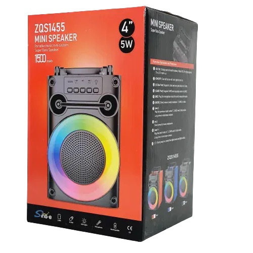 Unități de vânzare: produs individual Dimensiune ambalaj: 32 × 31 × 77 cm Greutate brută per bucată: 8.0 kgBoxă Portabilă Bluetooth Wireless ZQS-1372 Bass Puternic | Reîncărcabilă | Lumini RGB